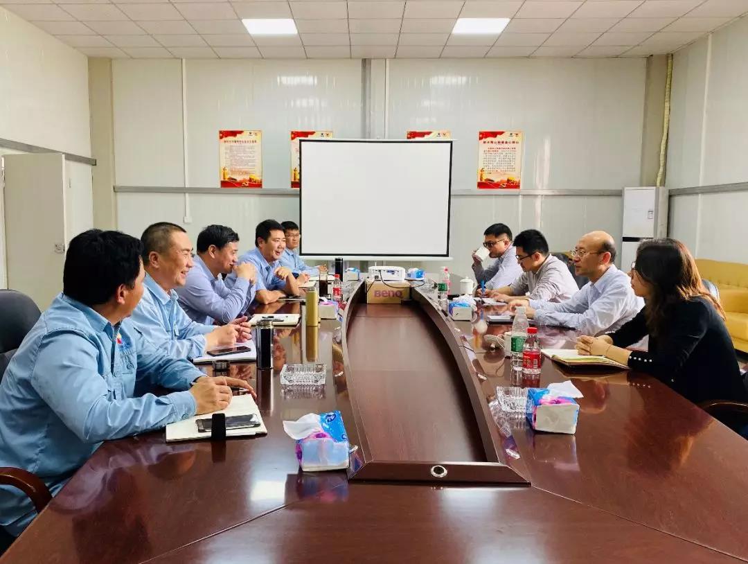 樓江寧一行深入現(xiàn)場(chǎng),考察項(xiàng)目各環(huán)節(jié)建設(shè)情況,并與IPMT項(xiàng)目部、中機(jī)科技發(fā)展(茂名)有限公司主要負(fù)責(zé)人員開(kāi)展座談。
