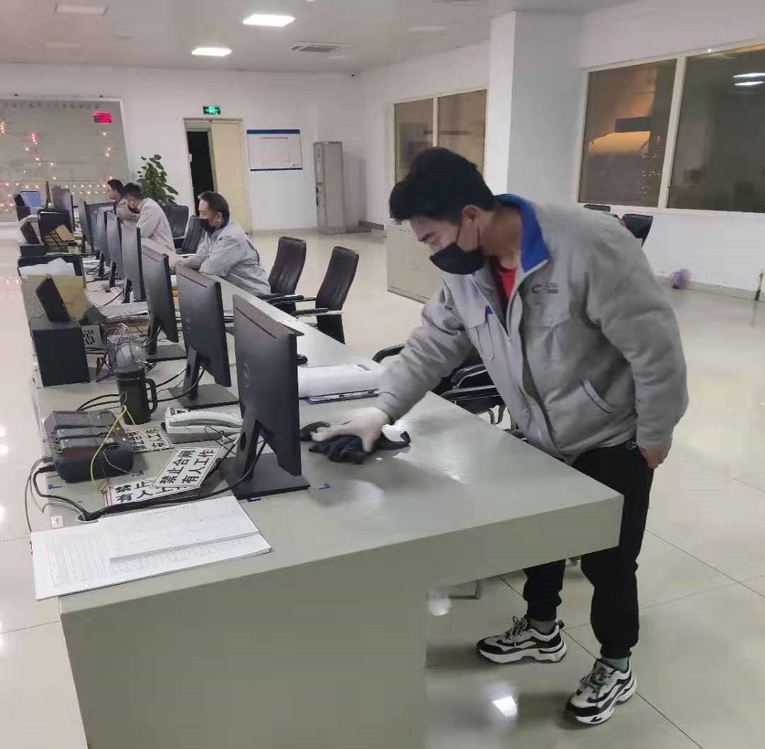 做好項(xiàng)目現(xiàn)場疫情防控工作是首要。當(dāng)面對(duì)各種防疫物資緊缺,購買不到消毒液和醫(yī)用酒精時(shí),中機(jī)國能寧東熱電有限公司努力創(chuàng)造條件解決問題。公司結(jié)合自身現(xiàn)有的生產(chǎn)用次氯酸鈉庫存,與其它化工企業(yè)協(xié)商借調(diào)酒精庫存,并邀請(qǐng)寧東公共衛(wèi)生中心專業(yè)人員按比例調(diào)配出符合要求的消毒液,最終廠區(qū)的衛(wèi)生安全得以有效保障。