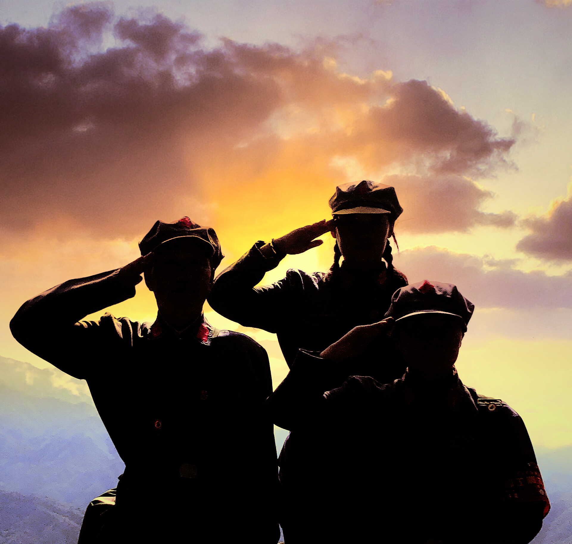 在井岡之巔、云海之中,迎著太陽,同志們紛紛用剪影記錄下這一刻。