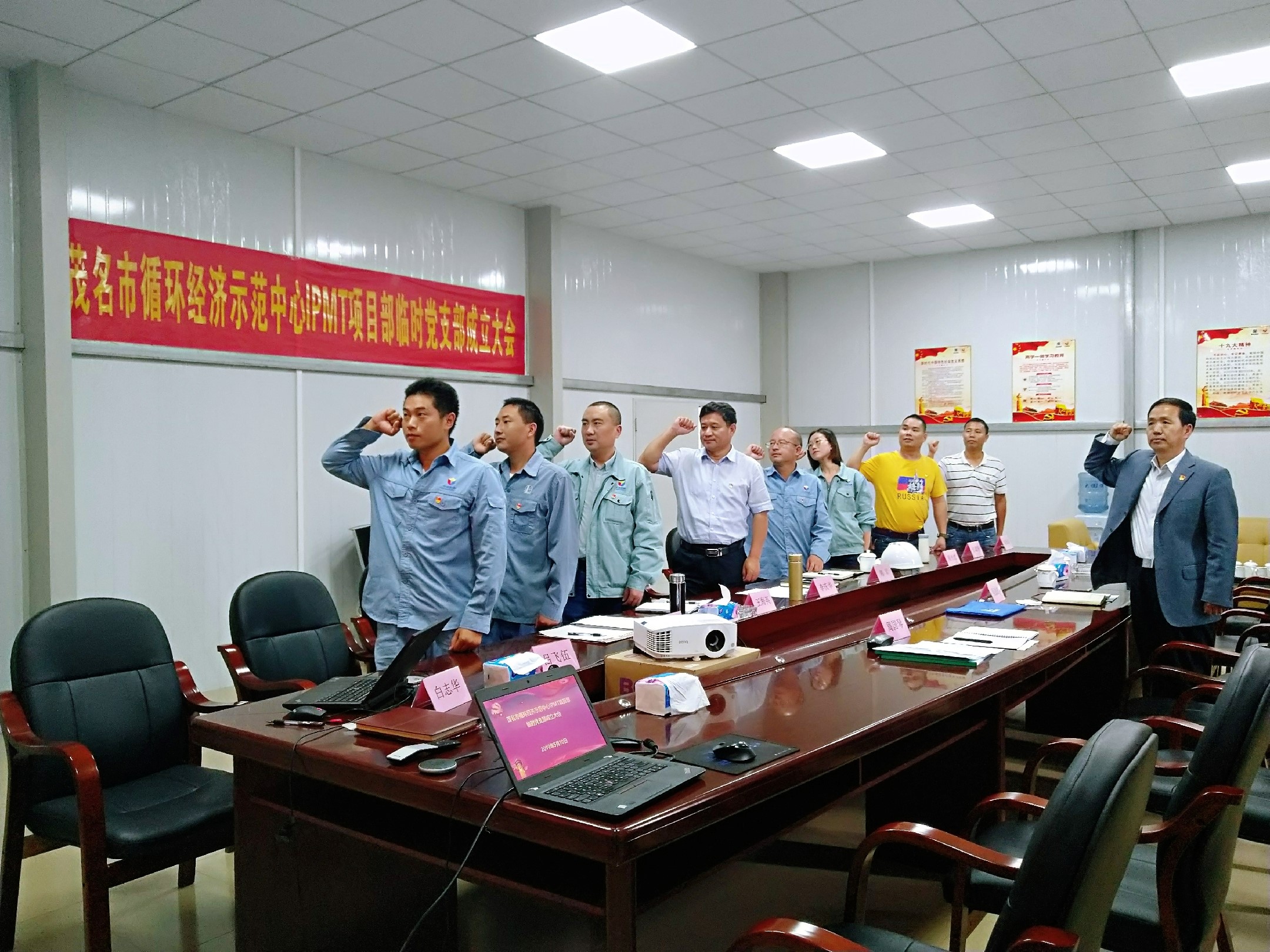 項目的按期完成關系到地方政府打贏環保攻堅戰的全局和企業生存發展的大局。為確保重點項目的順利推進,進一步推動“黨建+業務”理念向基層延伸,在茂名市循環經濟示范中心IPMT項目部成立臨時黨支部,充分發揮黨組織和黨員在重點工程建設中的戰斗堡壘作用和先鋒模范作用。