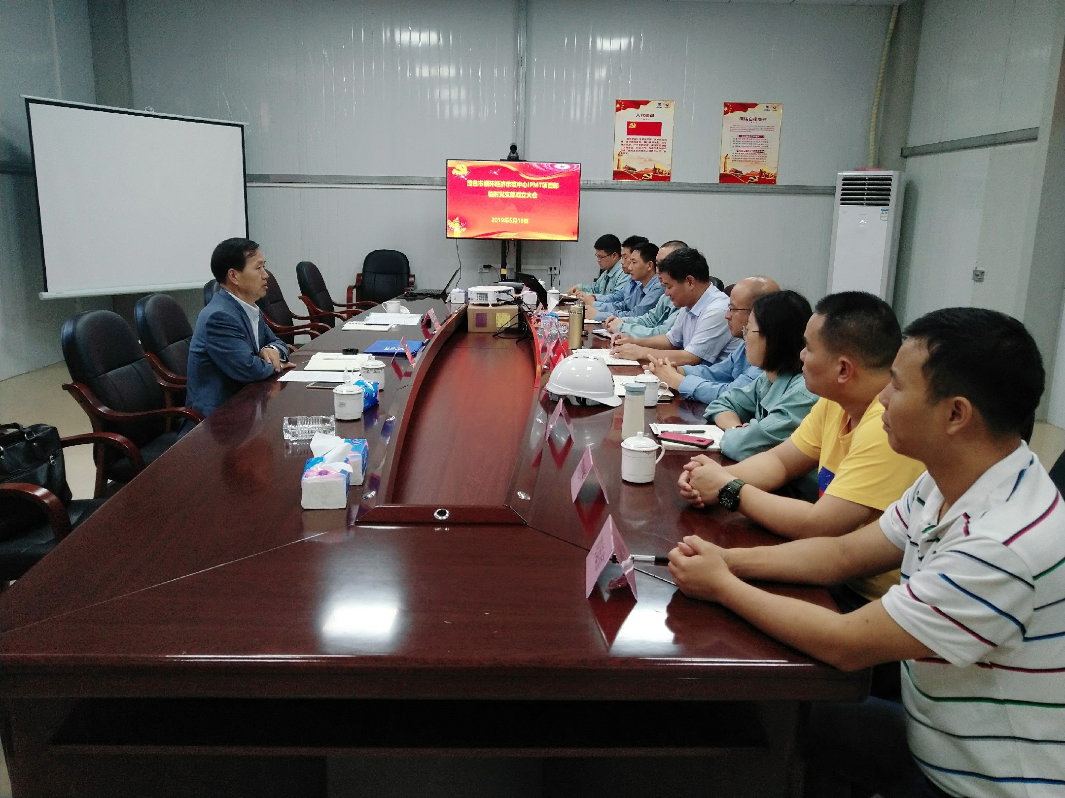 5月10日,茂名市循環經濟示范中心IPMT項目部召開臨時黨支部成立大會,中國能源工程集團黨委副書記、紀委書記吳勁抖蒞臨會議,支部全體黨員參加大會。