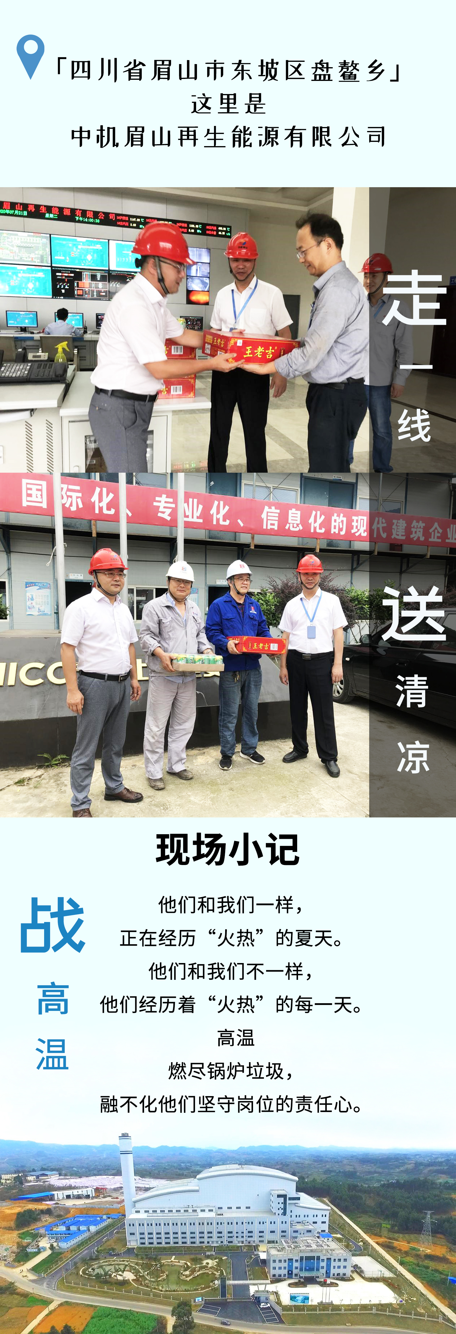 中機眉山再生能源有限公司(簡稱“中機眉山”)組織開展“送清涼”慰問活動,為公司和項目其他參建單位一線員工發放防暑降溫物資。