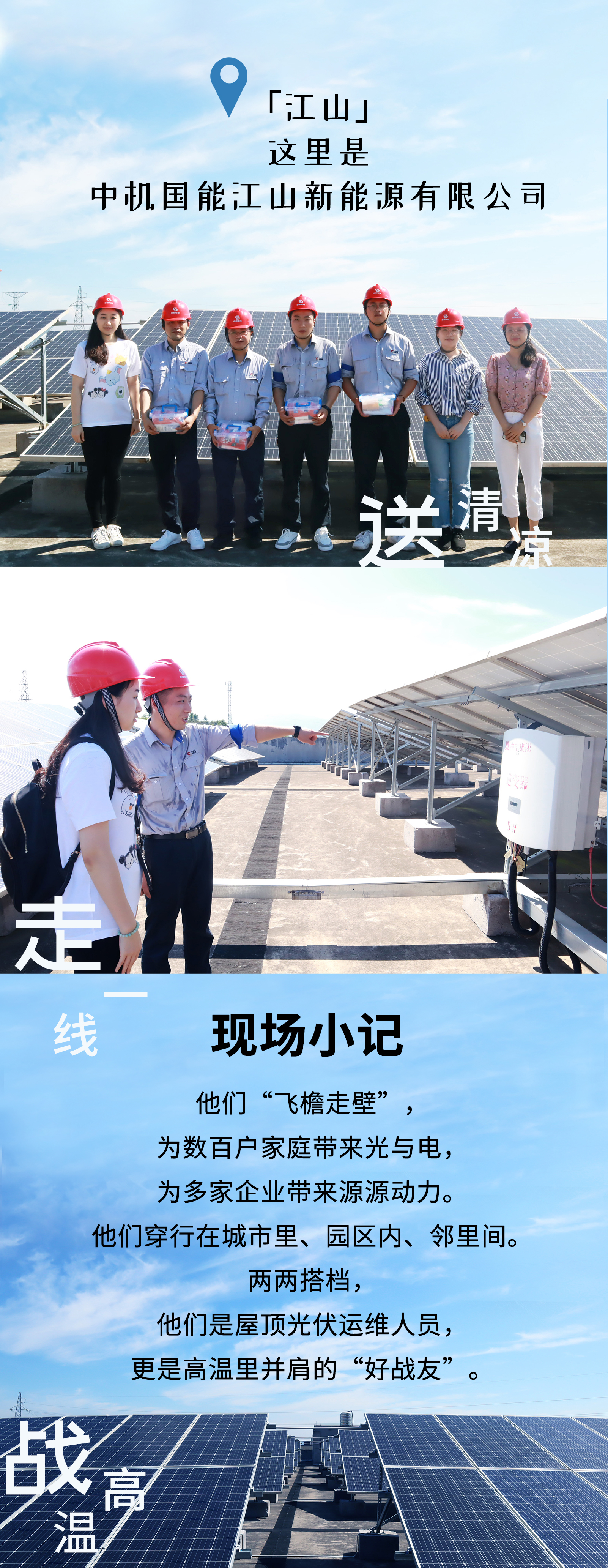 中國能源工程集團工會組織相關人員及中電集團相關人員赴中機國能江山新能源有限公司(簡稱“江山新能源”)慰問一線員工,考察項目情況,發放防暑物資。