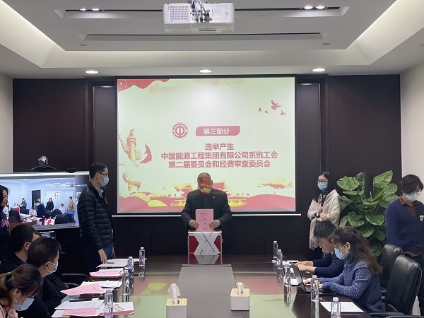 大會通過無記名投票的方式,選舉產生了中國能源工程集團有限公司系統工會第二屆委員會、經費審查委員會。同日,系統工會新一屆委員會召開第一次會議,選舉產生了新一屆工會主席、經費委員會主任,提名并產生了新一屆女職工委員會及女職工委員會主任。